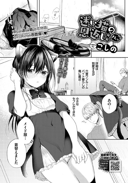 今すぐ孕ませ漫画を見る!▶トロあまエロスの匠・こしのが描く大人気猫系ヒロインが三度登場!! 主人公の家に遊びに来たあおい。いきなり渡されたプレゼントに喜ぶも、その中身はまさかの猫メイド服だった!? すっかりその気にさせられた彼女は、ご主人様へのご奉仕フェラや激しい手マンや乳首責めにイカされまくってしまい…