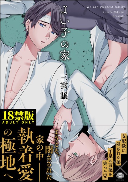 今すぐエロ漫画を見る!▶ようこそ、執着愛の極致へ――… 慈善活動をしていた両親を紛争地帯で亡くし、兄の遠羽も手足の自由を失ってしまった。その中でも献身的に兄の介護を続ける弟の繭。人々はそんな弟を「正しく素晴らしい」と称賛していた。–けれどそれは表の姿に過ぎなかった。繭は家に帰れば兄に一日中玩具を挿入し、イってもイっても終わらない快楽漬けの調教を繰り返していたのだ。そんな中、遠羽が家を抜け出そうとしたことから、二人の関係は変化し始めて…… 支配欲に侵された弟×手足と言葉を失った兄の、究極の箱庭愛。※本電子書籍は 『よい子の家』をオトナ向けに一部改訂したものです。 同タイトルと同内容ですので、重複購入にご注意下さい。