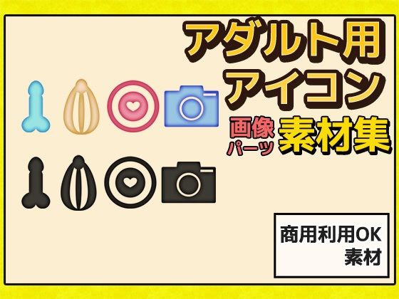 今すぐ同人ゲームを見る!「成人用アイコン・マーク」のアダルト作品作りに利用しやすい商用利用可能な素材画像パーツです。